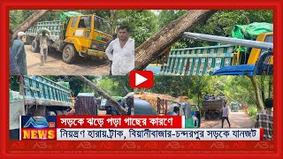 সড়কে ঝড়ে পড়া গাছের কারণে নিয়ন্ত্রণ হারায় ট্রাক, বিয়ানীবাজার-চন্দরপুর