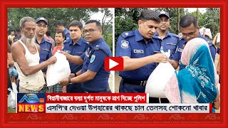 বিয়ানীবাজারে পুলিশের মানবিকতা- বন্যার্ত মানুষের হাতে এসপি’র উপহার