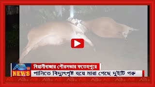 বিয়ানীবাজার পৌরসভার ফতেহপুরে বিদ্যুৎপৃষ্ট হয়ে মা’রা গেছে দু’টি গরু