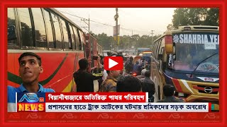 বিয়ানীবাজারে অতিরিক্ত পণ্য পরিবহনের দায়ে ট্রাক আটক, শ্রমিকদের সড়ক