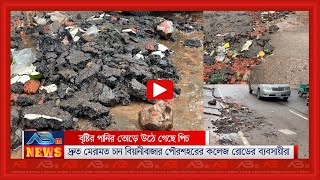 বৃষ্টির পানির তোড়ে উঠে গেছে কলেজ রোডের পিচের একাংশ,