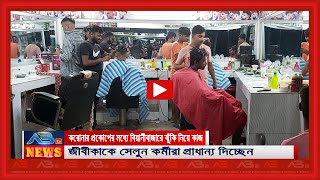 করোনার প্রকোপের মধ্যে বিয়ানীবাজারে ঝুঁকি নিয়ে কাজ- জীবীকাকে সেলুন
