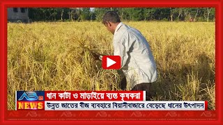 ধান কাটায় ব্যস্ত বিয়ানীবাজারের কৃষকরা, উন্নত জাতের বীজ ব্যবহারে
