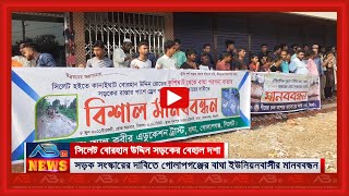 সিলেট-বোরহান উদ্দিন সড়ক সংস্কারের দাবিতে বাঘাবাসীর মানববন্ধন